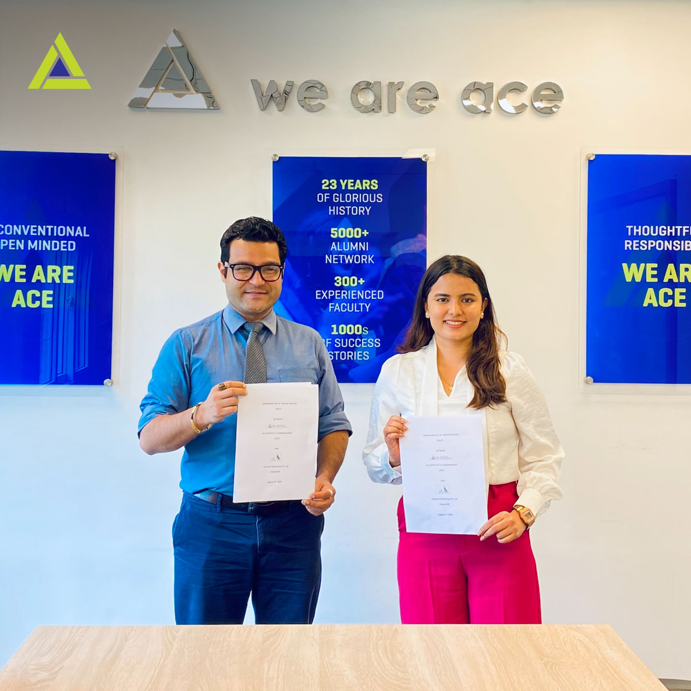 A Memorandum of Understanding (MoU) was signed between Ace Institute of Management and Hypeyeti Marketing Pvt. Ltd. on August 3, 2023, at Ace Premises.