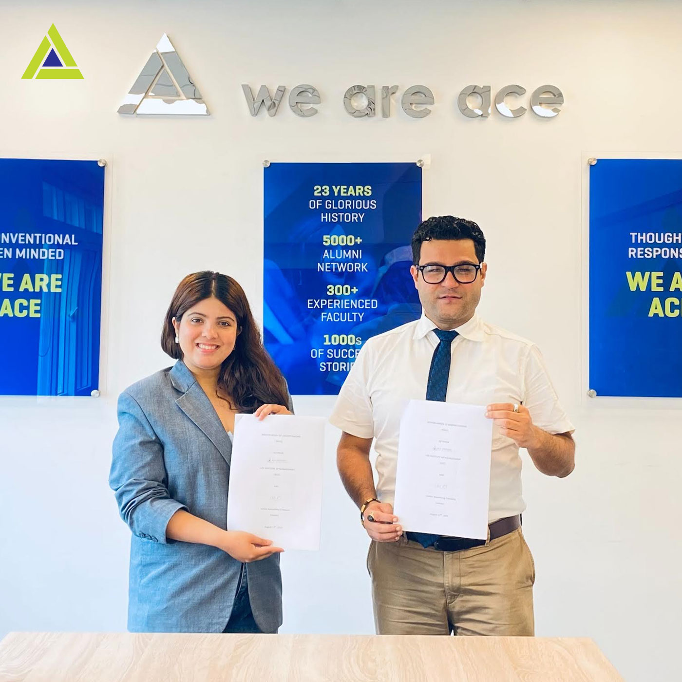 A Memorandum of Understanding (MoU) was signed between Ace Institute of Management and Limbic Advertising Company on August 17, 2023, at Ace Premises.