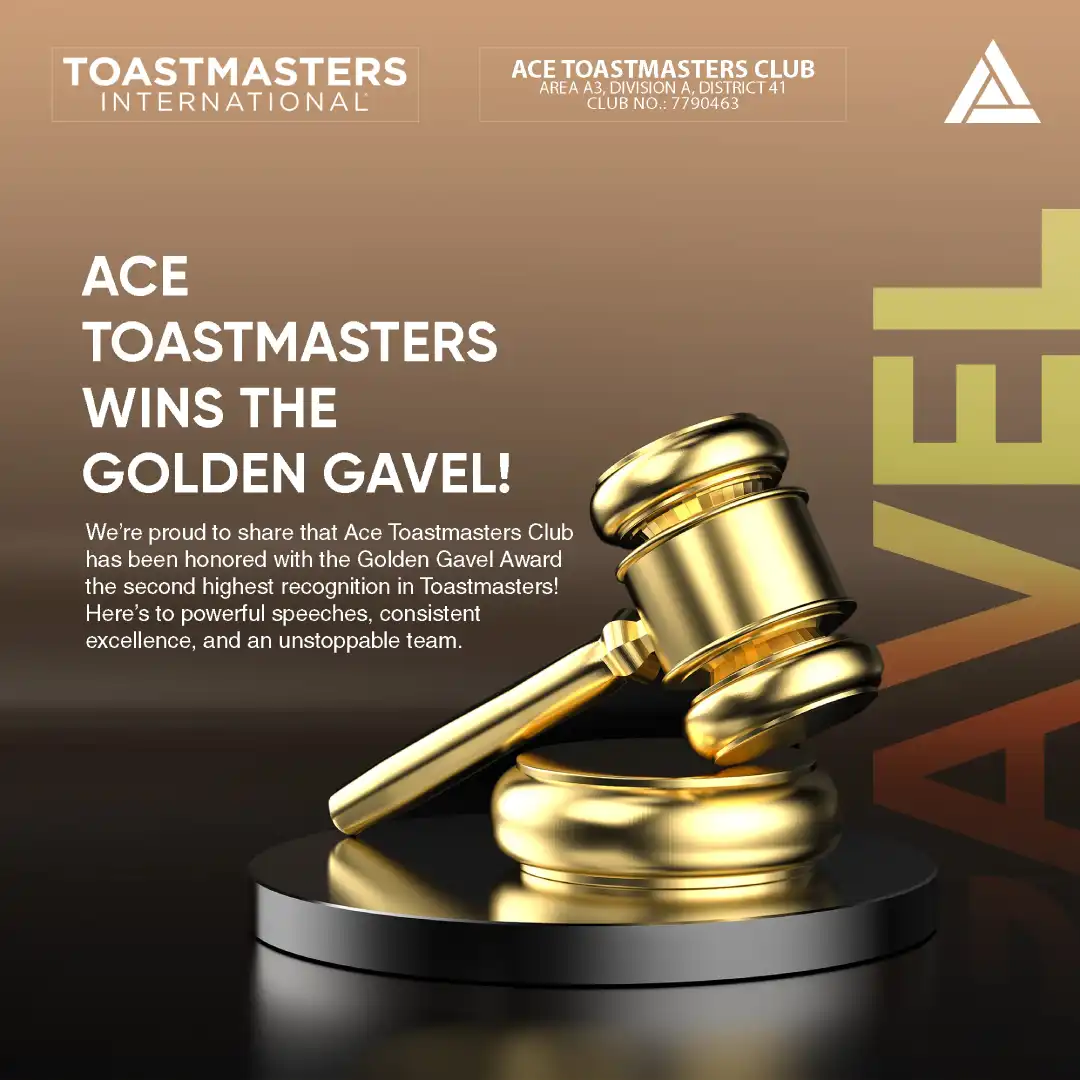 Ace Toastmasters Club has been honored with the Golden Gavel Award; the most prestigious recognition in all of Toastmasters for 2024-25!