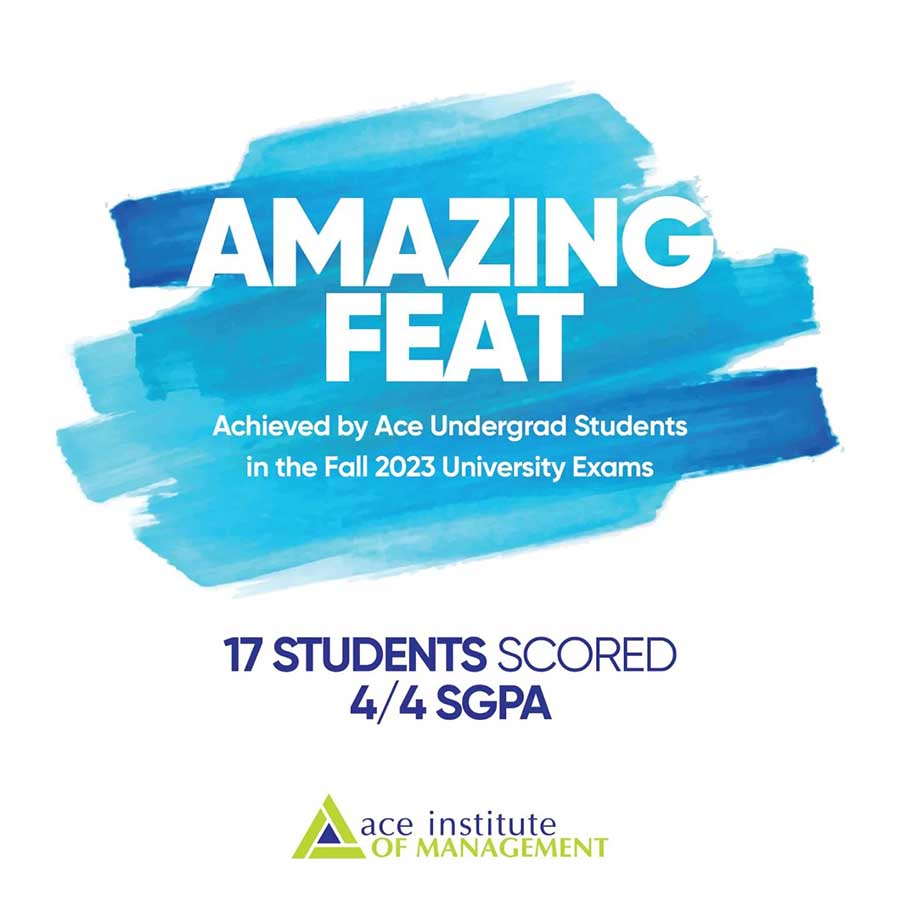 Since its inception, Ace Institute of Management has been promoting the best academic ecosystem along with a vibrant co-creation platform. Ace Institute of Management hence, has been fostering a platform for students to foster and thrive. In recent times, our dear Acers have been part of a #amazingfeat. 17 of our students have scored a 4/4 SGPA. This group of study have indeed set a benchmark and has created a moment of pride for us.