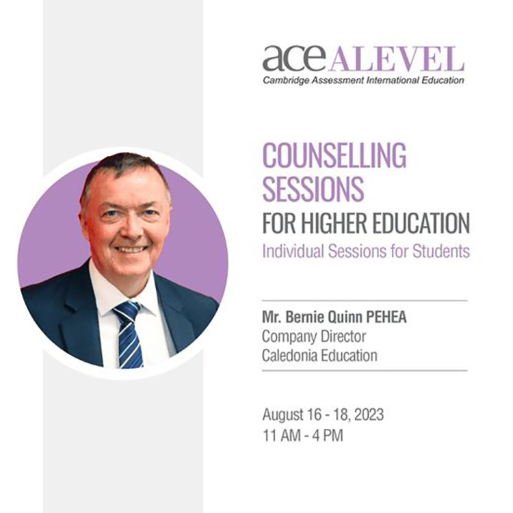 Looking forward to Higher Education Counselling Session led by Mr. Bernie Quinn, Company Director, Caledonia Education Consultants, happening Aug 16th to 18th.