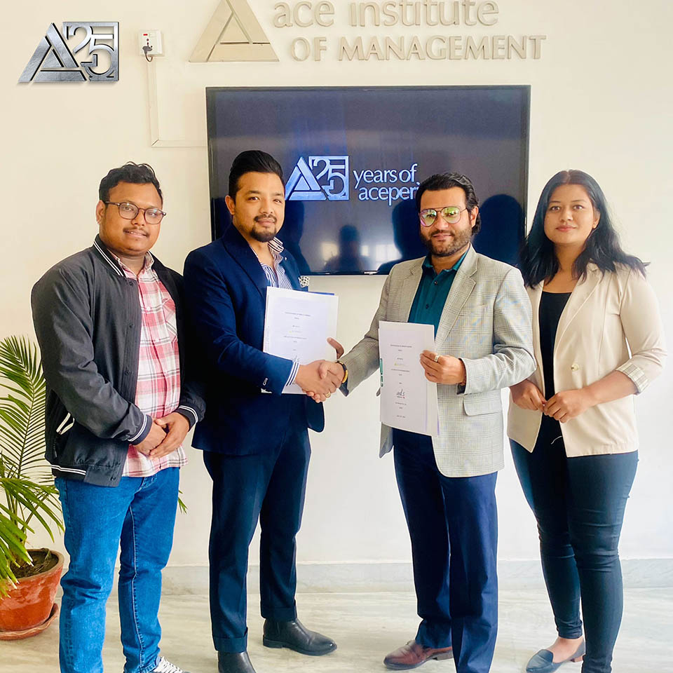 A Memorandum of Understanding (MoU) was signed between Ace Institute of Management and Ads Market Pvt. Ltd, on April 11, 2024 at Ace Premises.