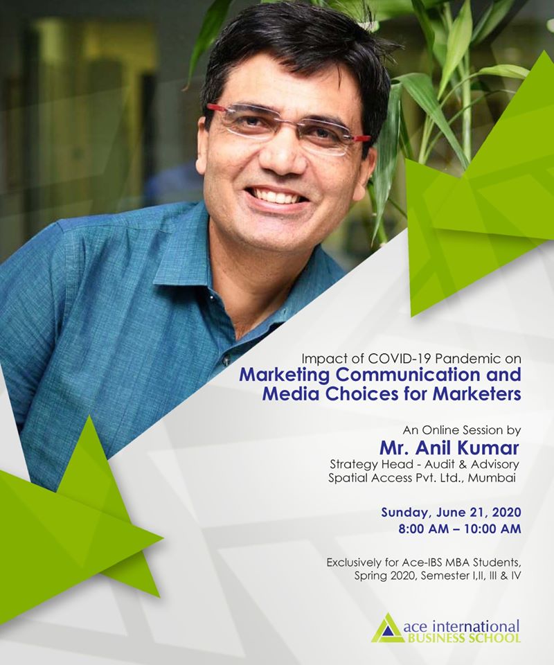 As the impact of COVID in our lives and work unfolds, and as we endeavor to learn newer ways to effectively overcome the challenges, we are grateful to Mr. Anil Kumar for agreeing to discuss and share ideas with our MBA students on “Impact of COVID Pandemic on Marketing Communication & Media Choices for Marketers”. This discussion and idea sharing session will revolve around: