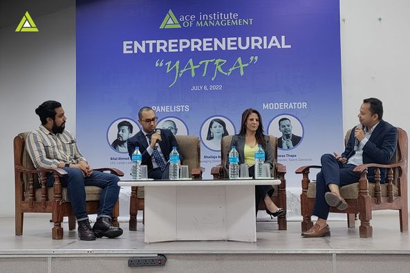 Entrepreneurial Yatra was successfully conducted on June 6, 2022. Like every year, this time too, it brought amazing panelists to the same stage. The whole event was informative, insightful and engaging at the same time. Thankyou to the organizers (Students of Ace Undergraduate School) for making this panel discussion a huge success. We would also like to take this opportunity to thank the panelists Mr. Bilal Ahmed Shah, Mr. Aabhusan Jyoti Kansakar, Ms. Shailaja Adhikary for enriching the students with your Entrepreneurial Yatra and special thanks to the Moderator Mr. Diwas Thapa for facilitating the discussion.